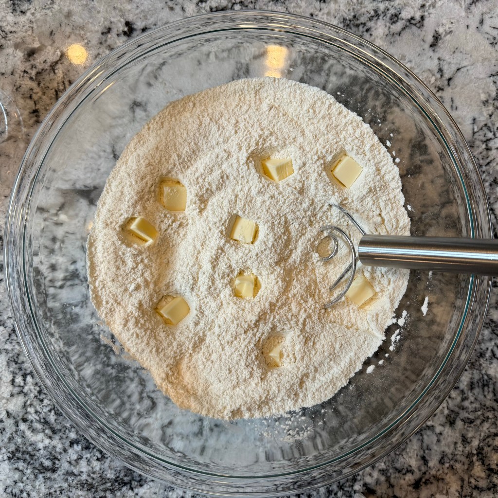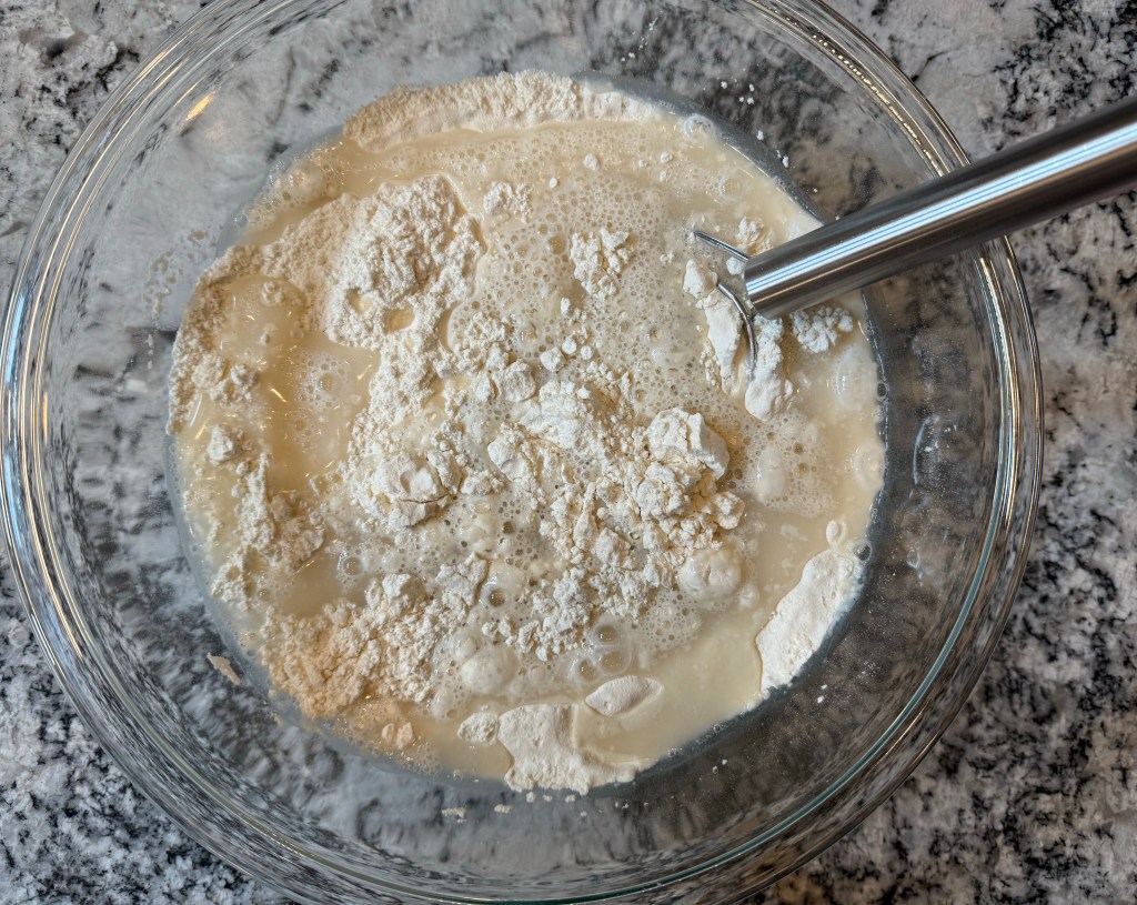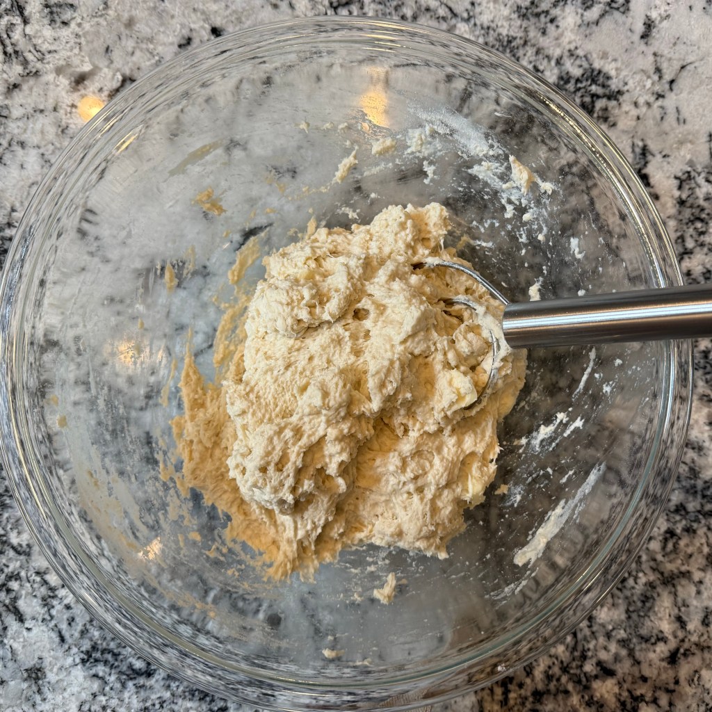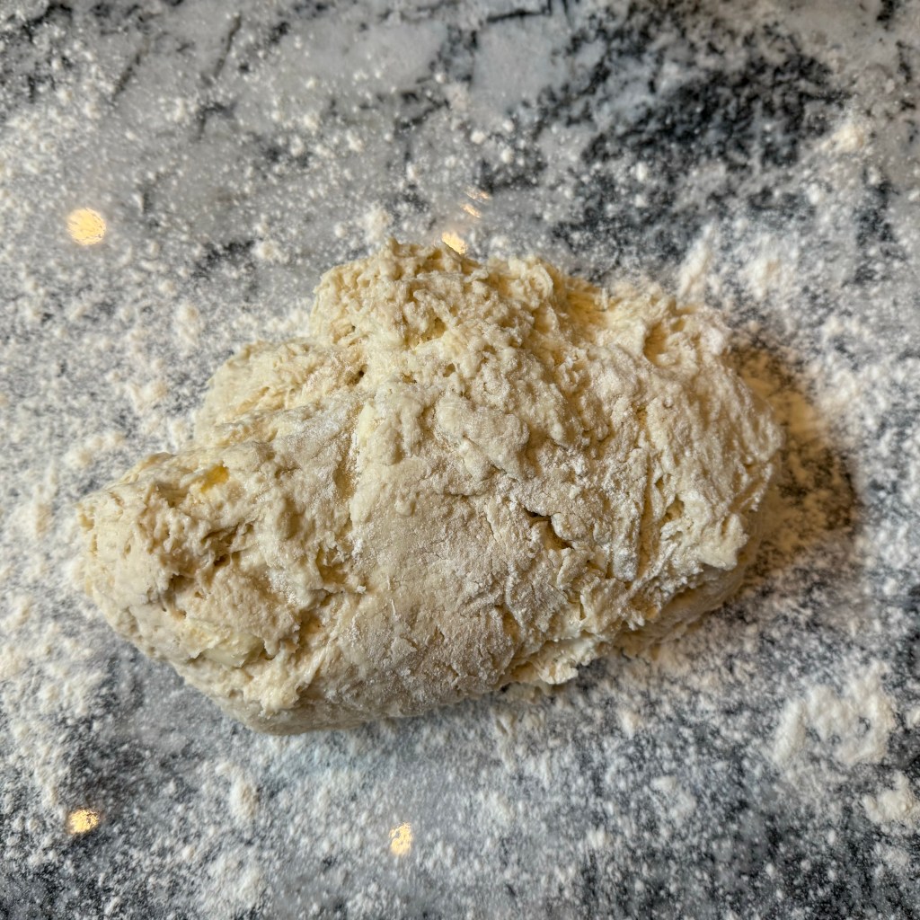 I used my dough scraper to scrape the dough out of the bowl onto a floured counter.