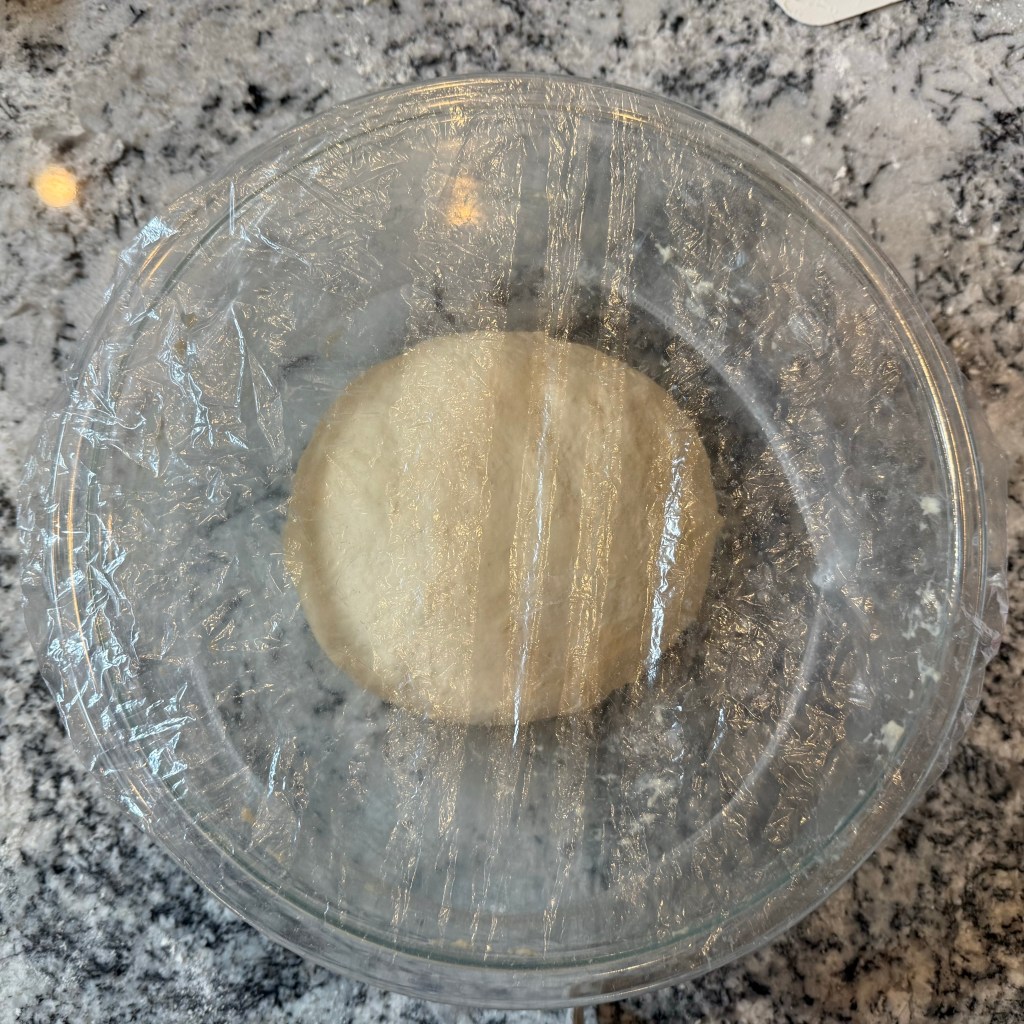 After kneading I put the dough back in the mixing bowl, took its temperature, covered it, and set it aside to rest for an hour. I took this opportunity to clean up my workspace.