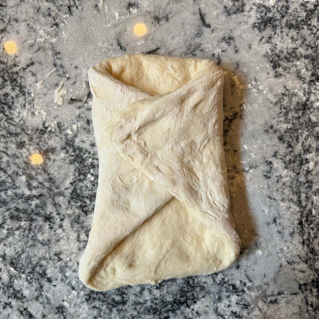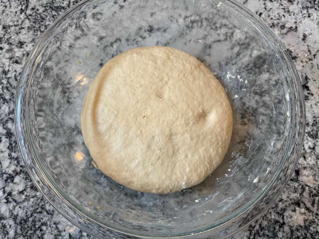After an hour I used the “doorbell test” to confirm the dough was ready to be shaped. It can be hard to measure when a dough has doubled from visual cues alone, so additional methods to gauge the dough’s readiness are helpful. In the picture below you can see that when I poked the dough it sprang back partially, but not all the way.