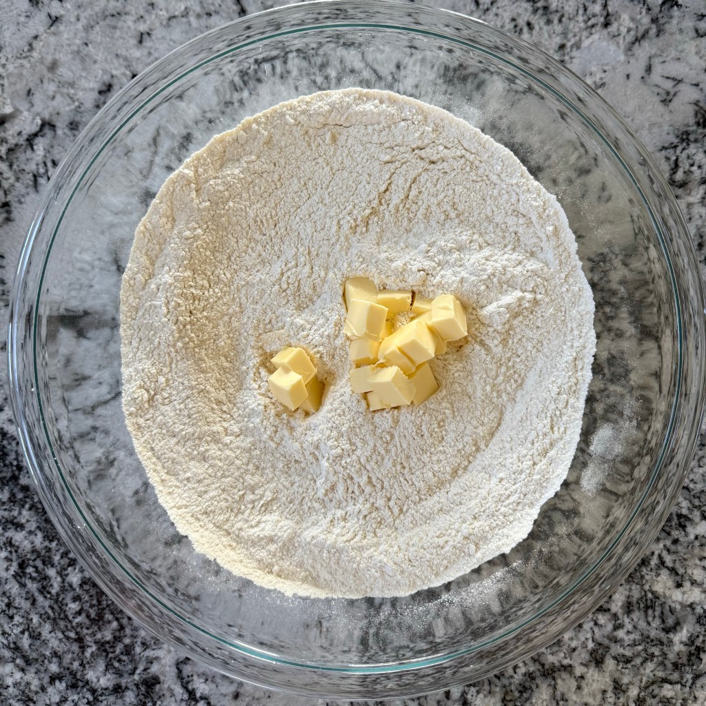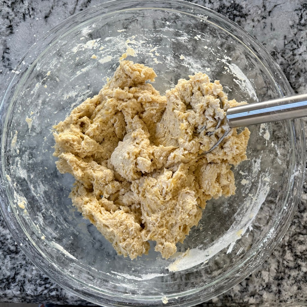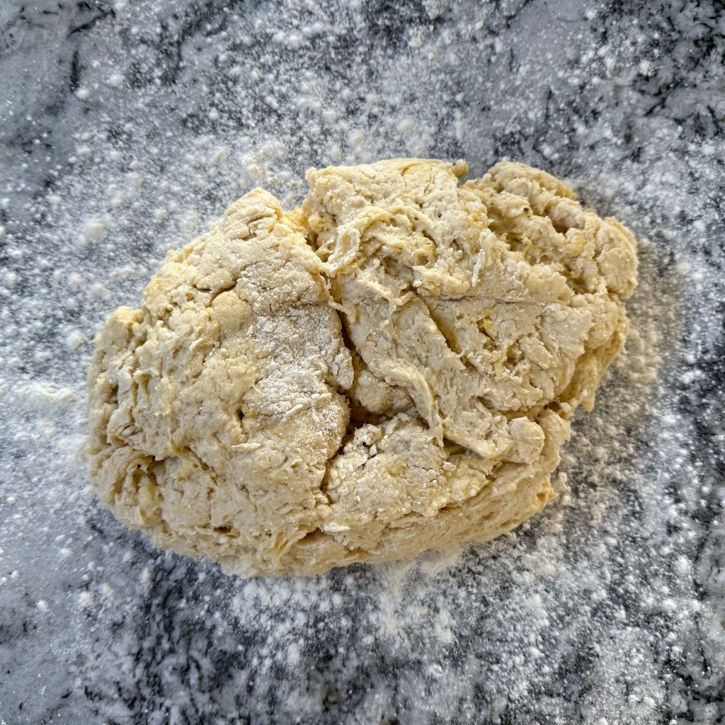 … then added the butter and worked it in by hand. The recipe instructed that the butter should be worked into the flour until it was “evenly dispersed,” but did not recommend a method to achieve this, so I rubbed the butter into the flour in the same way I would for biscuits or a pie crust.