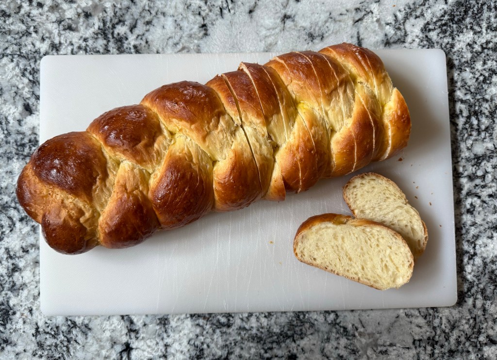 Before baking I mixed up an egg wash and brushed it over the plain braided loaf.