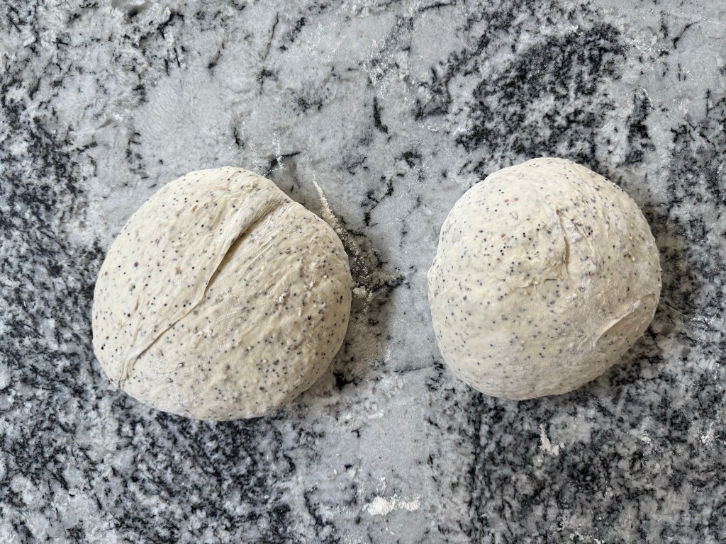 After the dough had risen for an hour I divided it in two and preshaped shaped it.