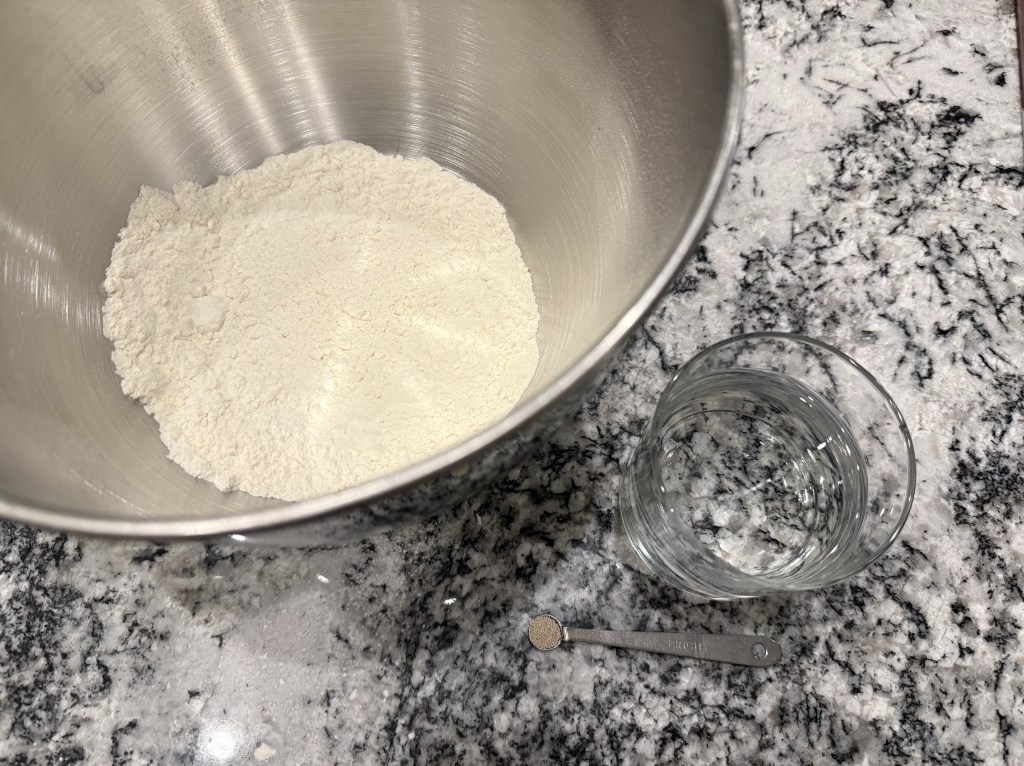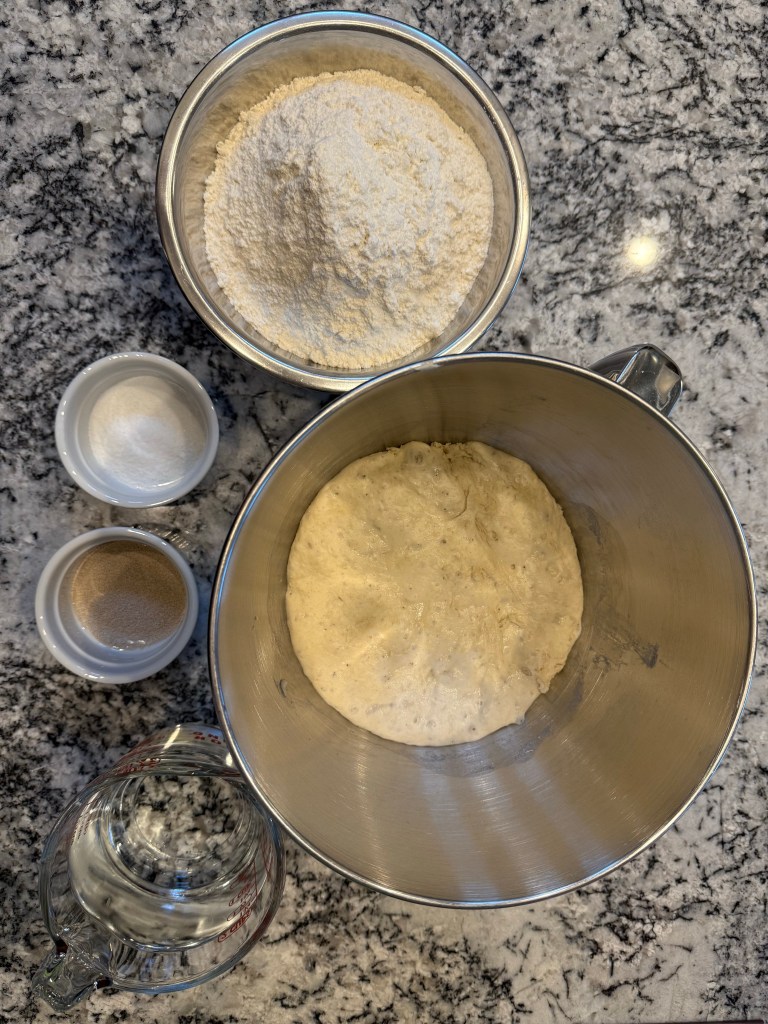The night before my bake I mixed the biga. This was quite a stiff preferment, and after mixing the flour, water, and yeast together I had to knead them in the bowl for a minute or two to incorporate the last of the flour.