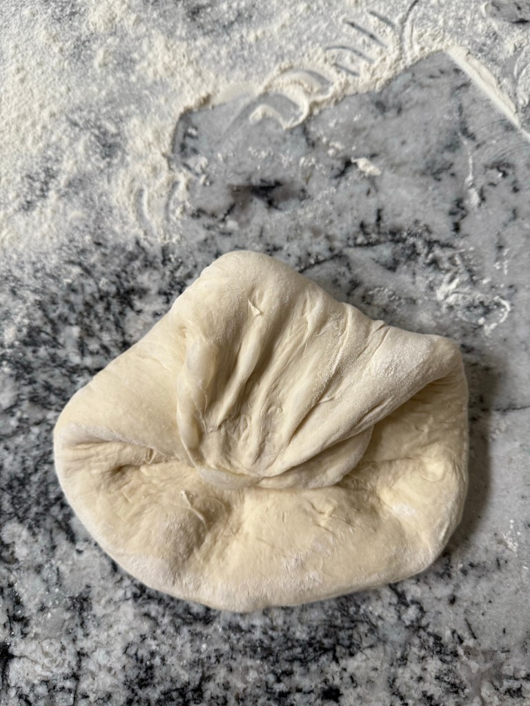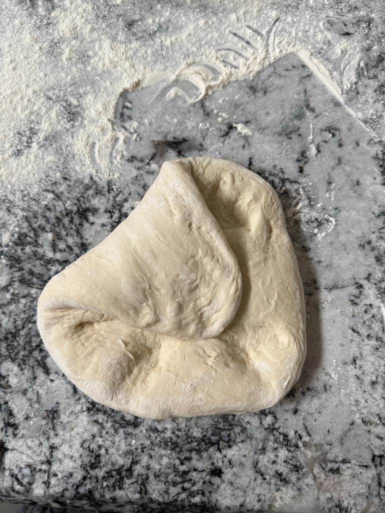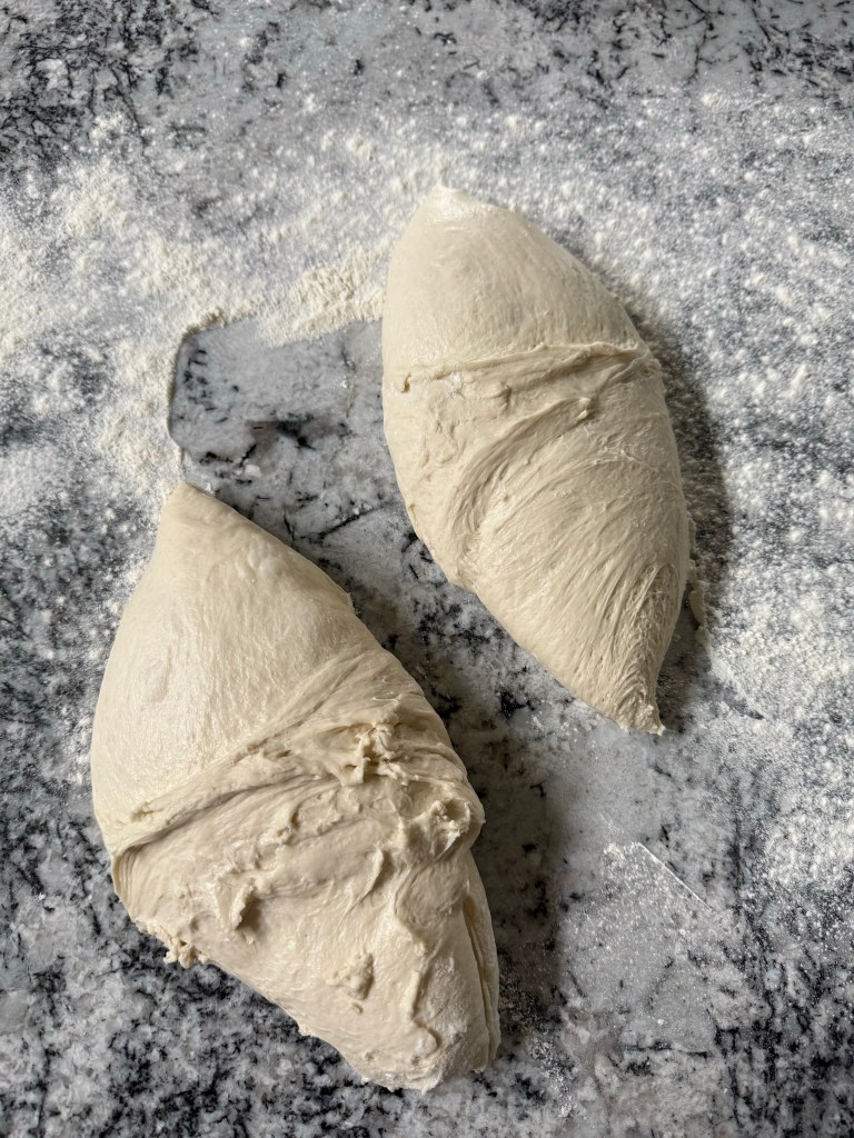 The dough rose for 1 1/2 hours with a fold in the middle to enhance the gluten structure. in the photos below you can see how much the bread rose during this period.
