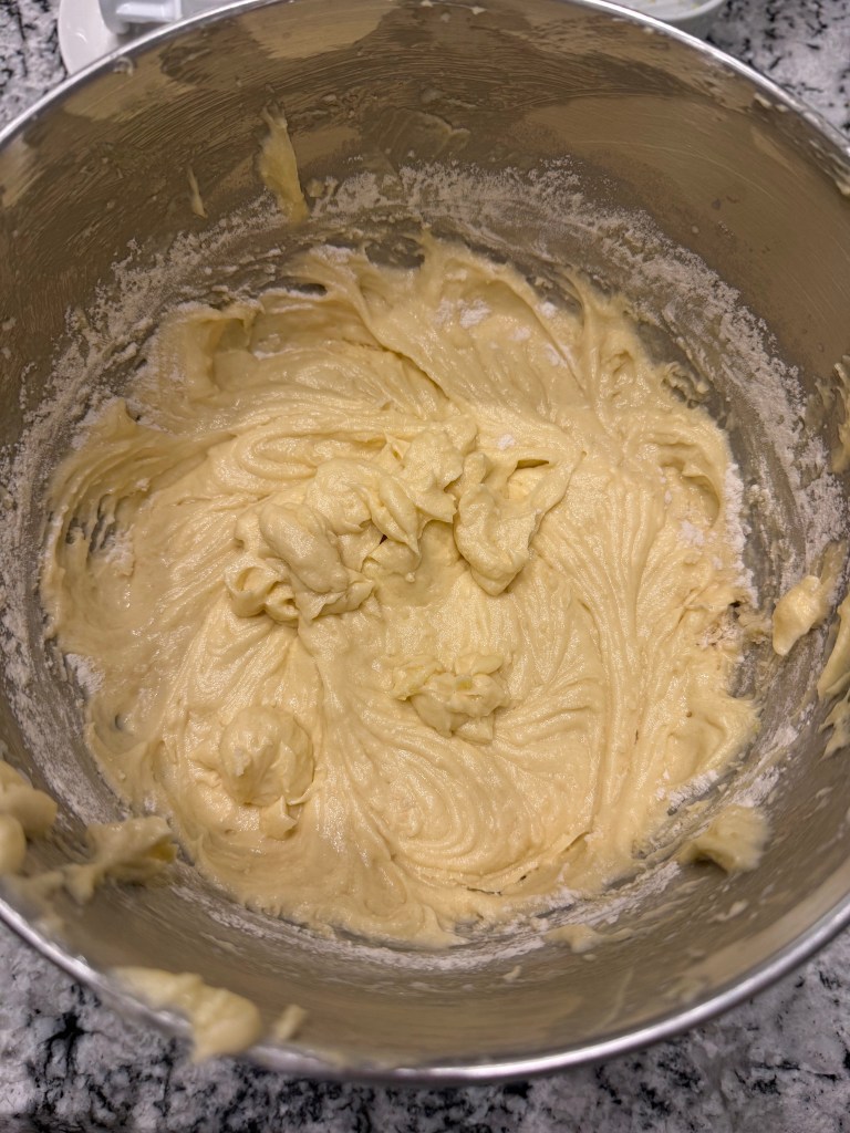 Then I added the eggs one at a time, beating each one in before adding the next.