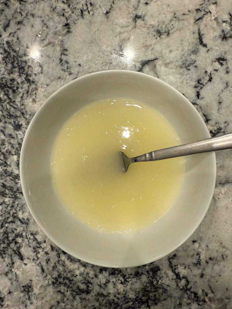 I let the cake cool in the pan for 10 minutes as recommended, then attempted to get it out of the bundt pan. Friends,it was stuck in there. With the cake still warm I couldn’t get it out of the pan without completely mauling it, so I took a page out of the angel food cake recipe and flipped the cake-in-the-pan over on a cooling rack to cool with the hope that gravity would assist me. Unfortunately, this did nothing. I ended up using my least rigid spatula to pry the cake away from the pan once it was fully cooled. It was not my best moment, but the cake still looked alright, so I whipped up the glaze.