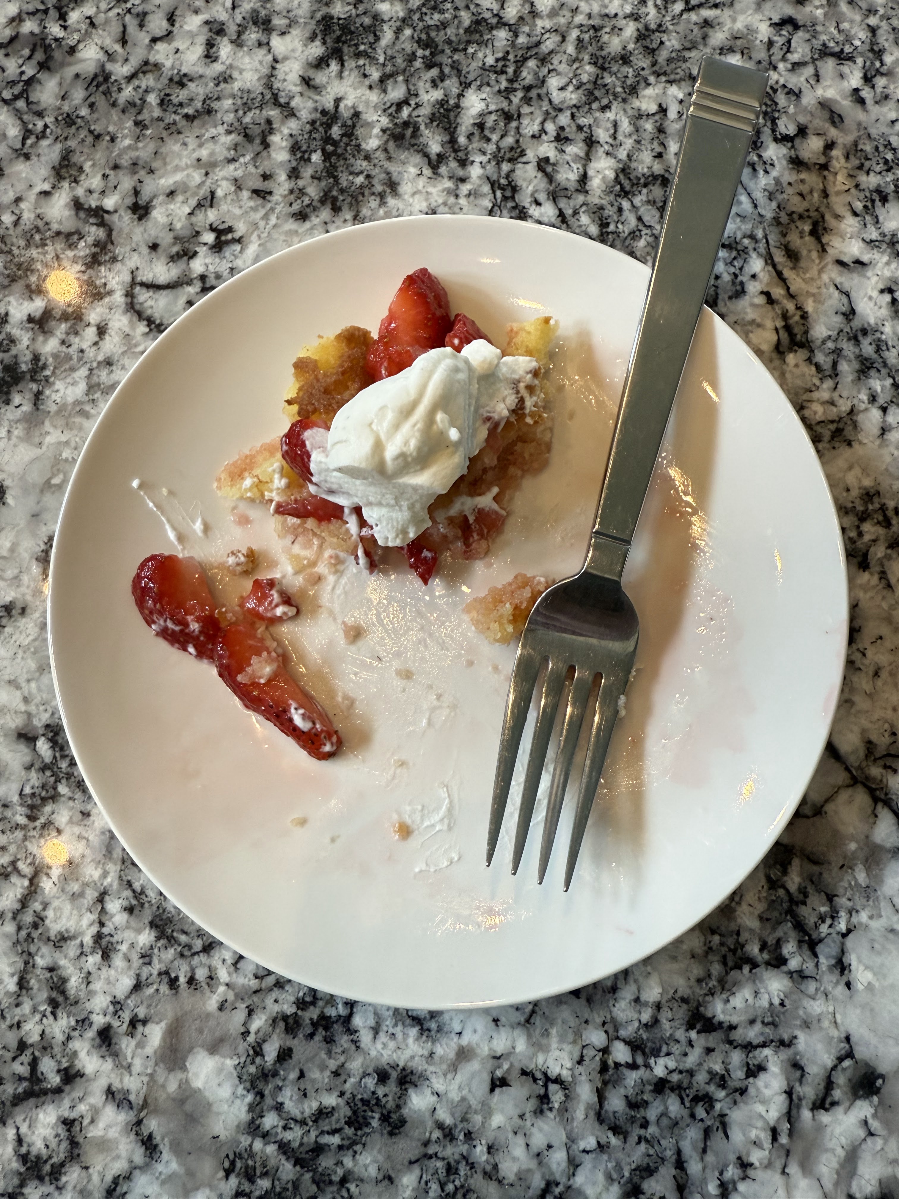 Lastly, this cake makes excellent strawberry “shortcake”. This was a great way to use up the leftover cake trimmings.