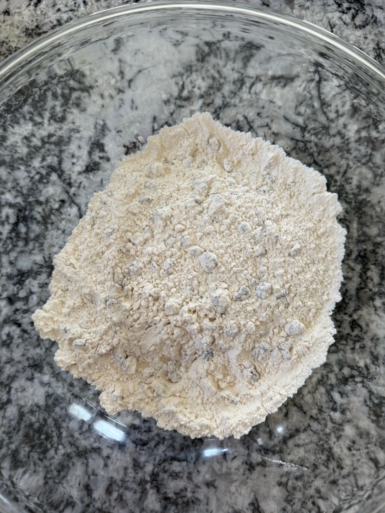 Lastly, I added the cream and stirred until the flour was all incorporated and I had a shaggy dough.