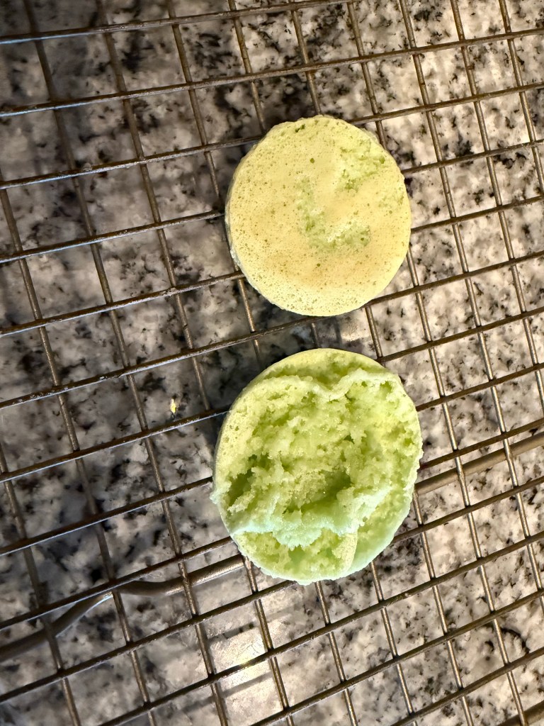 The macarons developed a lovely foot (the crinkly edge on the cookie) and the bake was gentle enough to not add any colour to the shells, but either they were ever so slightly underbaked, or the wet weather made them seem so. Either way, several shells didn’t pass quality assurance and were disposed of as test runs for my fillings. You know, in the name of science.