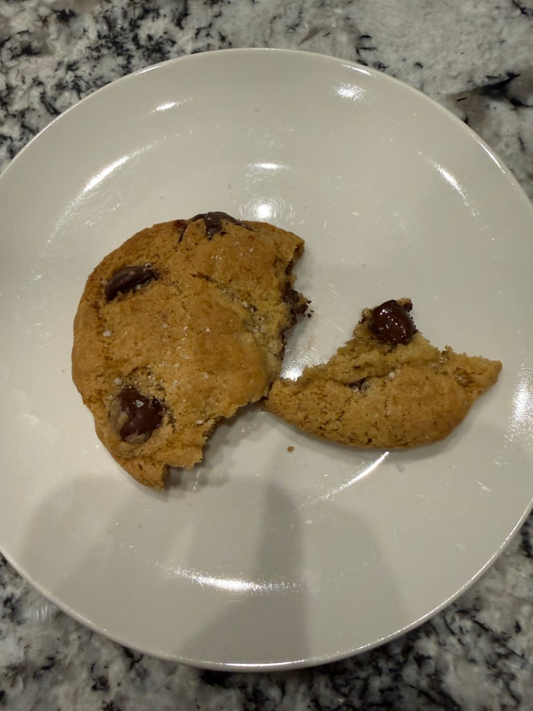 The cookies don’t have enough salt to my taste, but a sprinkling of flakey salt on top solved that problem and made me feel fancy.