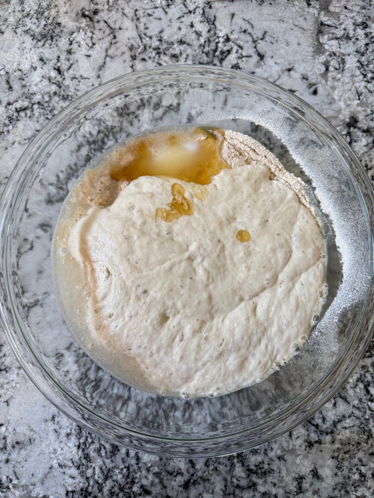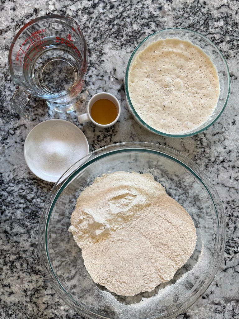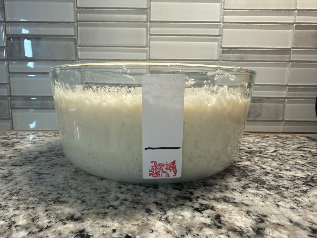 As always, I let my starter rise overnight. You can see here that it went a little past its peak and started to fall before I started the bake.