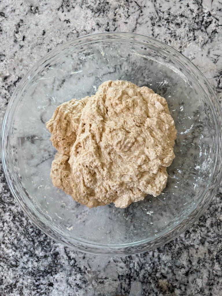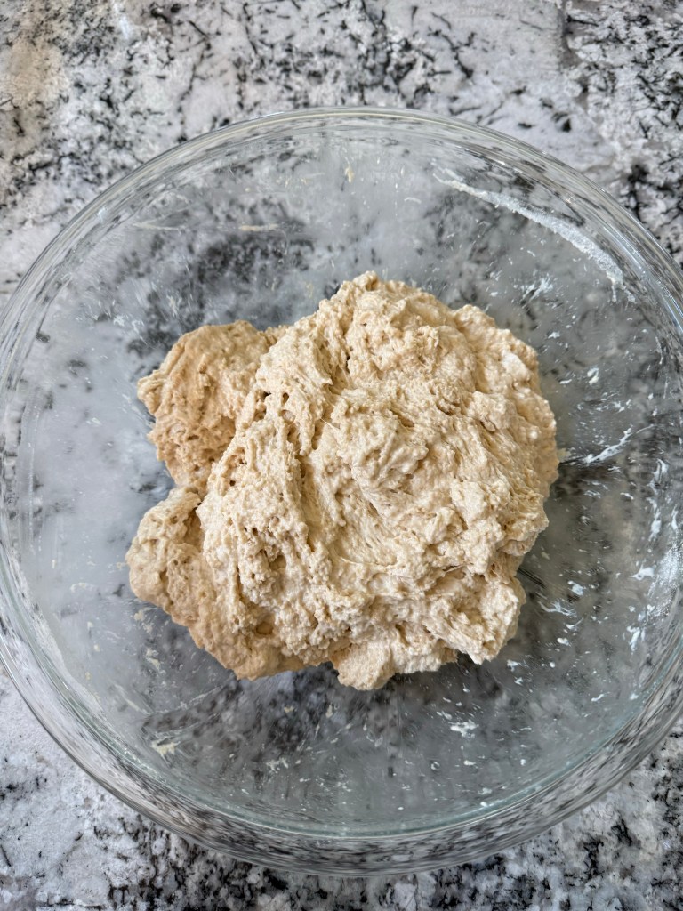 I added all the ingredients into the bowl and mixed until all the flour was incorporated. The dough was very shaggy.