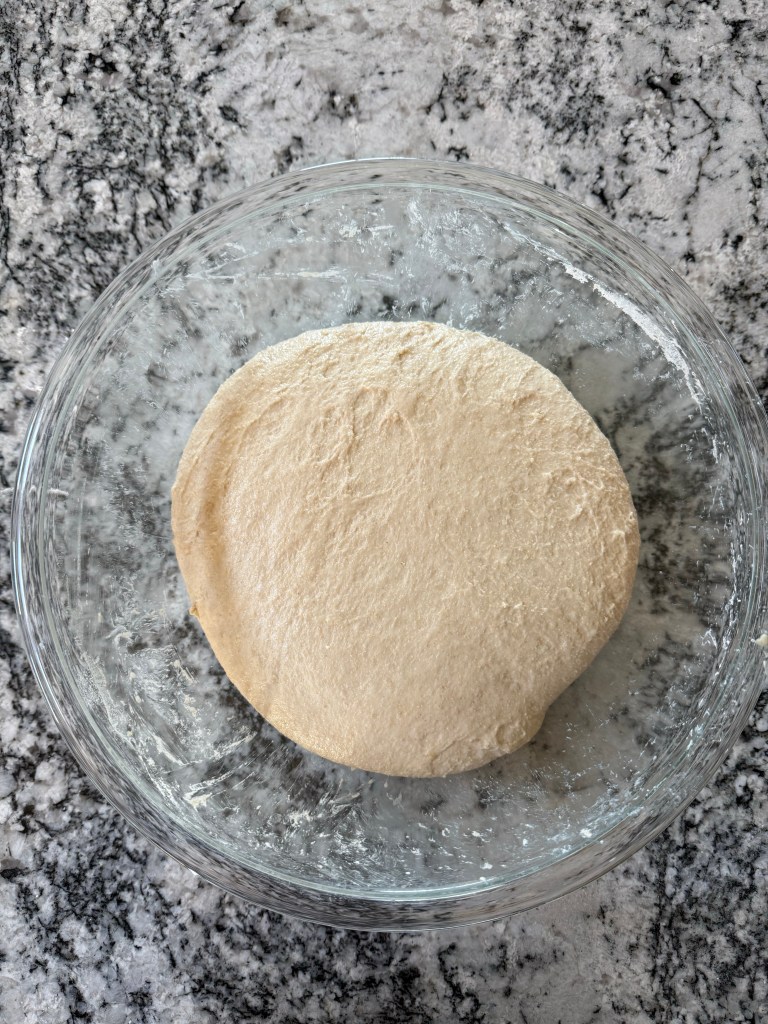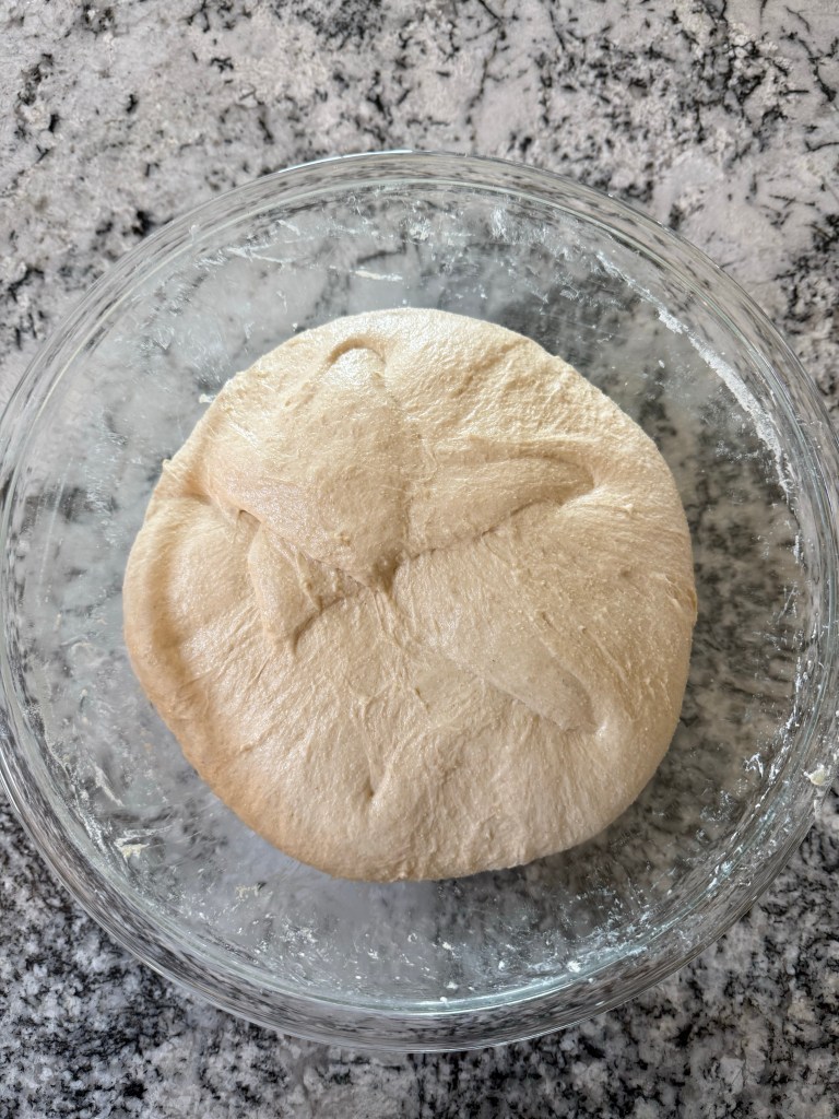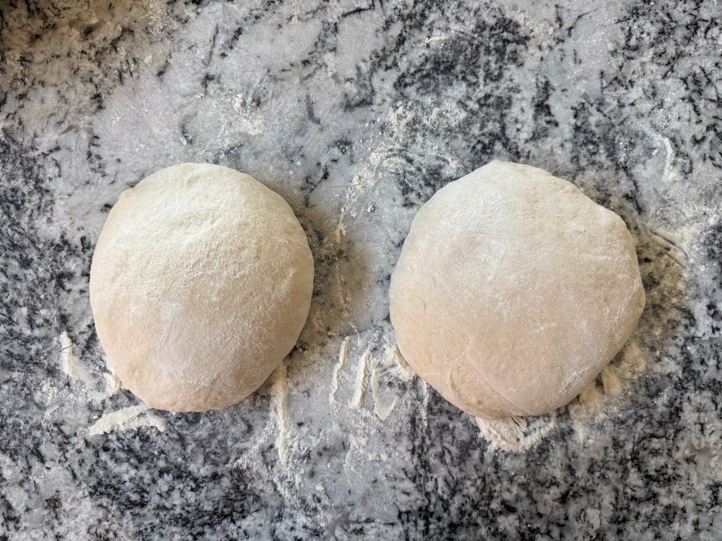 The dough rested for 15 minutes, then I kneaded it by hand using the slap and fold method until the dough was smooth.