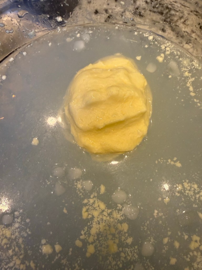 Making butter at home seems to be the new trend, and I couldn’t miss out on this one. I bought 1 quart of heavy cream, and whipped it in my Kitchenaid mixer. I started with 5 minutess on speed 4, then 5 minutes on speed 6, 5 minutes on speed 8, then a further couple of minutes on speed 10. I’ve never used speed 10 before on my mixer. In total, it took my KitchenAid 17 minutes to whip the butter until it broke into curds. I washed the butter in icewater 3 times to expel the buttermilk and help the butter curds adhere to each other in a block. This step was so messy and exasperating. I hated it.